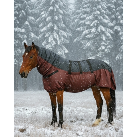 Thermo-Variante ist mit zusätzlicher Polarfleece-Schicht entlang der Rückenlinie ausgestattet – ideal für Pferde, die bei Feuchtigkeit und Kälte (auch Schnee) schnell frieren.